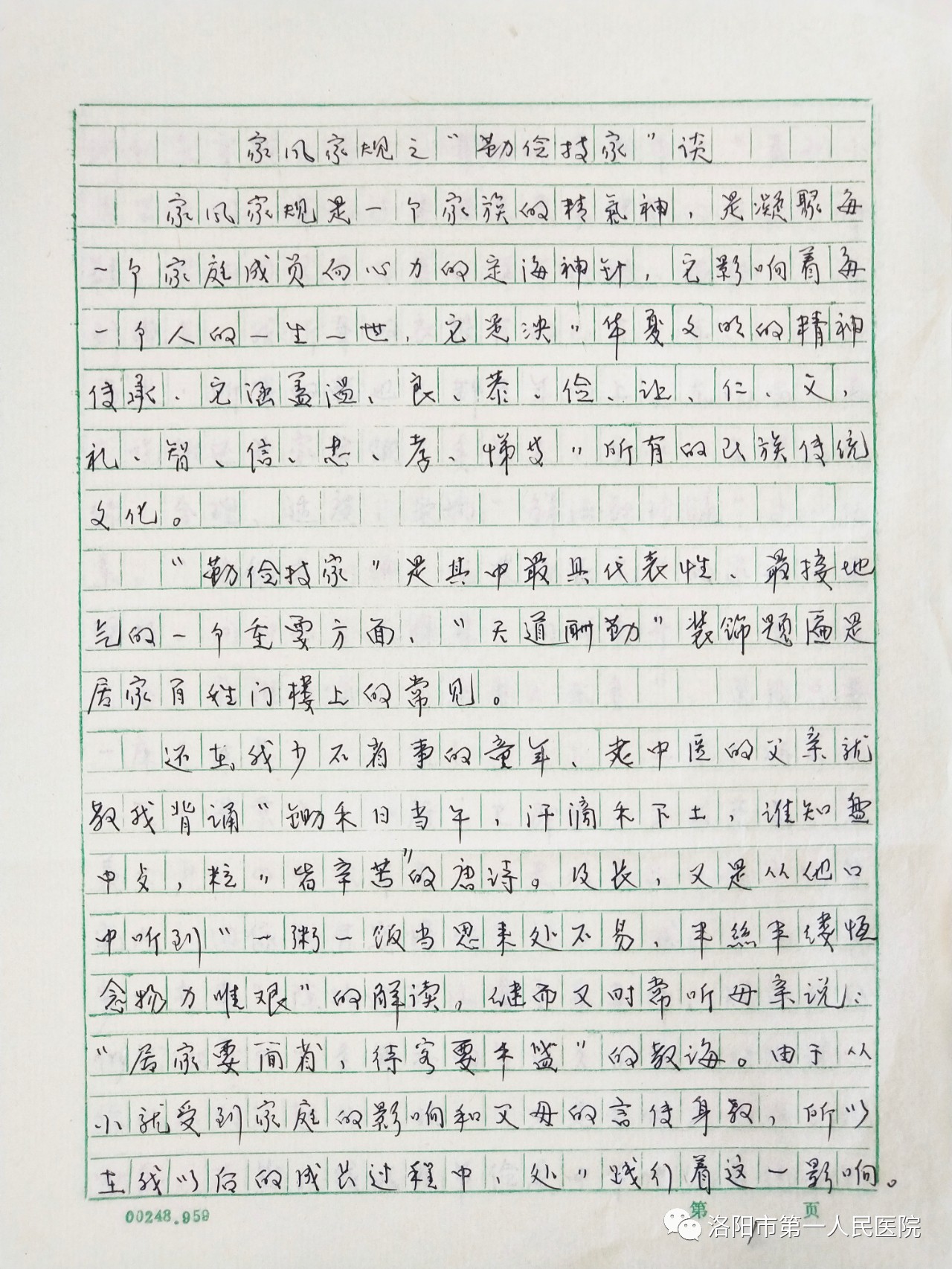 家风,是一个家庭的风气、风尚、风格。家风存在于家庭的日常生活中、家庭成员的举手投足中,是一种有形和无形的教育力量,对家庭成员起着耳濡目染的熏陶作用。有什么样的家风,就有什么样的家庭。“家风好,就能家道兴盛、和顺美满;家风差,难免殃及子孙、贻害社会。”为助推党风廉政建设,为加快洛阳副中心城市建设营造更加风清气正的政治生态。今年市纪委在全市开展廉洁家风建设,征集有关家风建设的优秀线索活动,接到通知后,今日看料纪委积极响应,在全院范围内寻找优秀家风建设的突出家庭。康复科李同瑞无意间谈到父亲注重家教的一段话,让我们发现榜样就在身边!