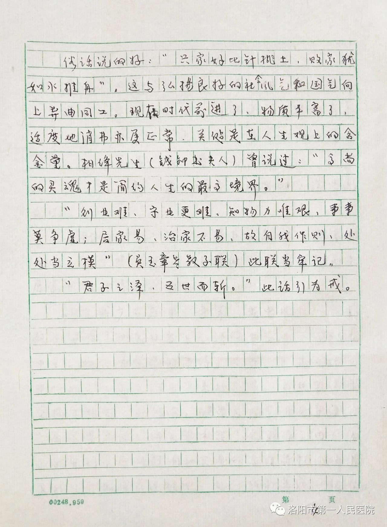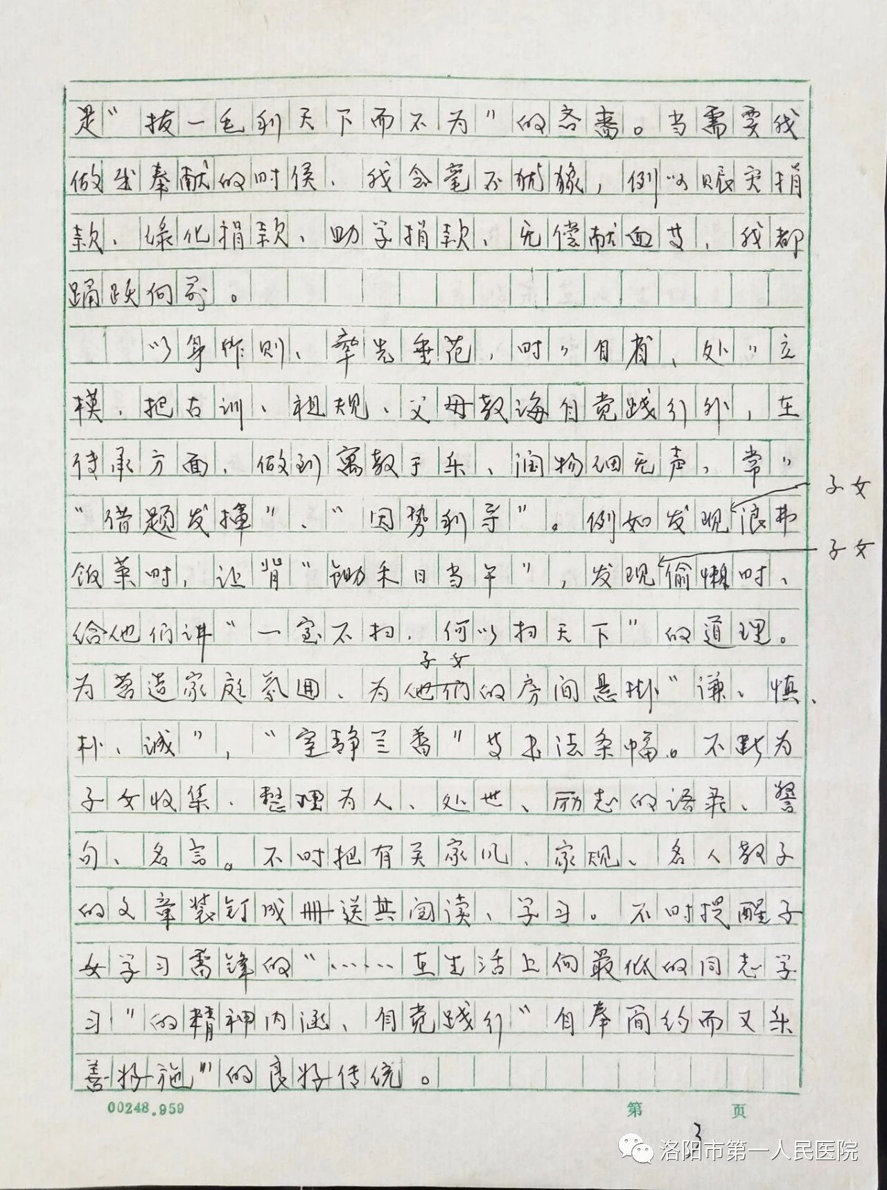 李老师流畅飘逸的手写稿件让我们再次感受到他热爱生活,热爱家庭,一丝不苟的处世态度;他饱含深情的追忆,让我们再次体会到家庭对于一个人品德教育的魅力。不论时代如何变迁,不论生活格局发生多大变化,家风,作为家庭的精神内核已经根深蒂固的生长在我们的骨髓里,流淌在我们的血液中,已经成为我们干事创业、成长成才、报国为民的重要起点!
