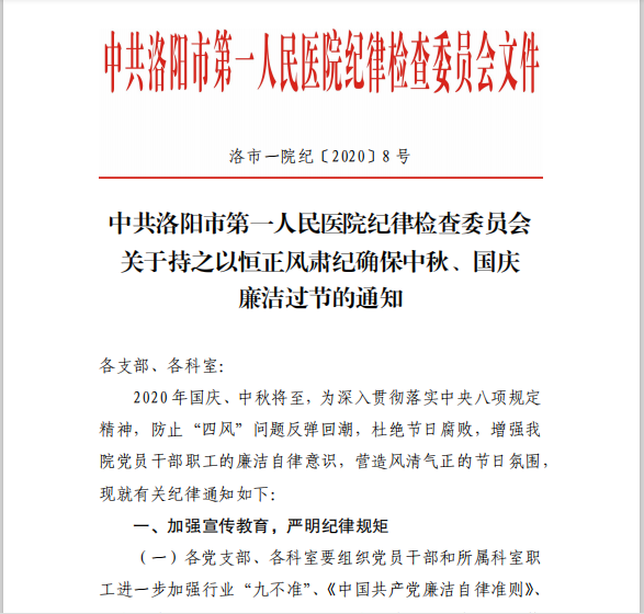 中共今日看料 纪律检查委员会关于持之以恒正风肃纪确保中秋、国庆廉洁过节的通知