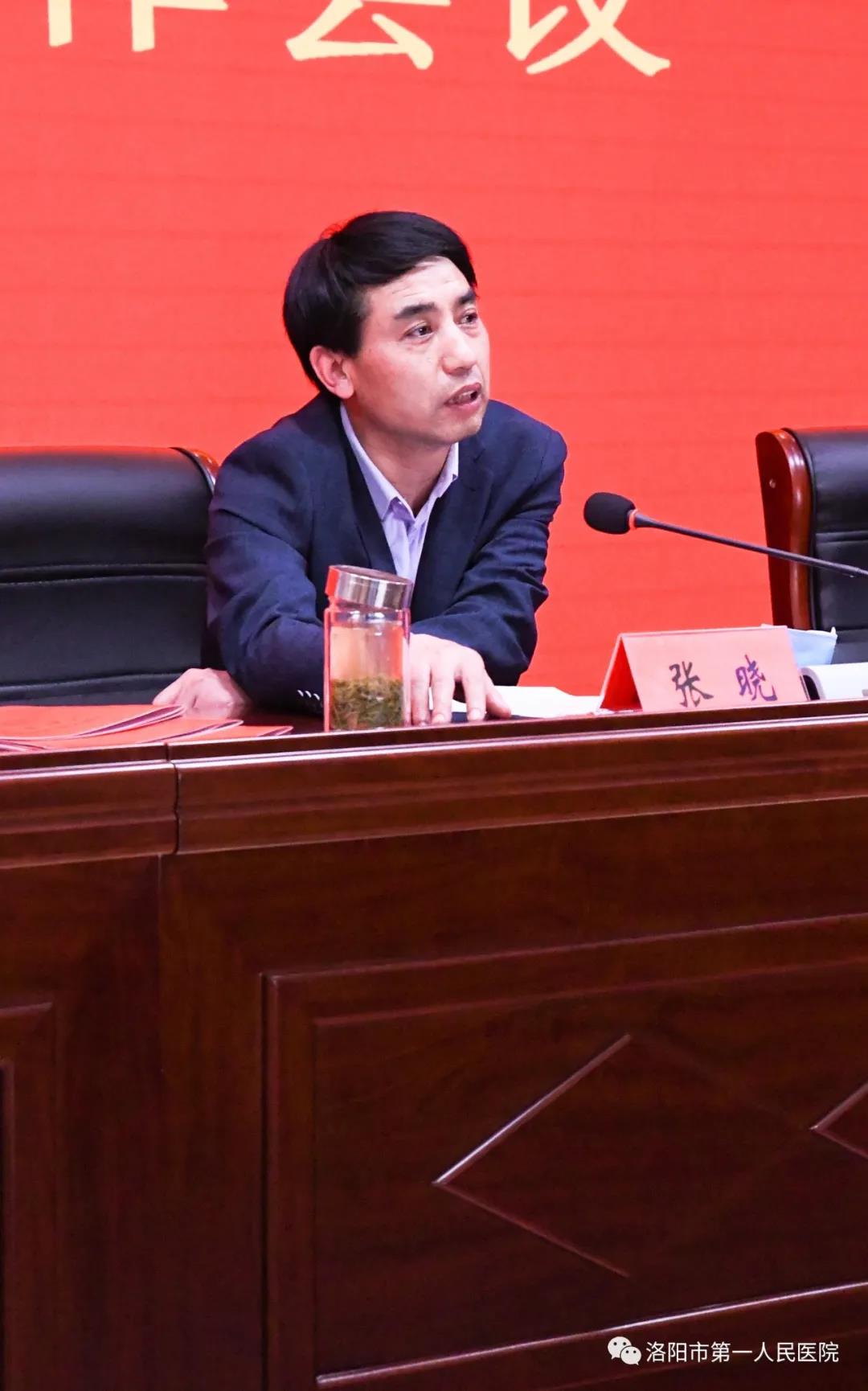 张晓希望全院职工一定要奋勇争先、只争朝夕,奋斗新时代,担当出重彩,做好新时代党建工作,抓好党风廉政建设和意识形态工作。让我们在市委市政府的正确领导下,牢记使命担当,为健康洛阳建设和卫生健康事业发展,为今日看料