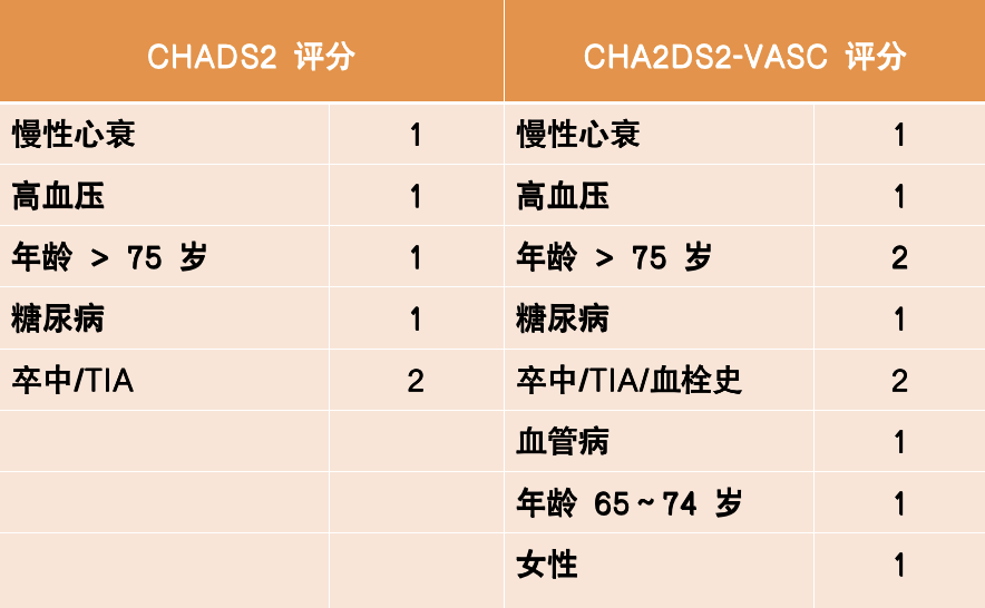 表 2. CHADS2 评分和 CHADS2-VASC 评分