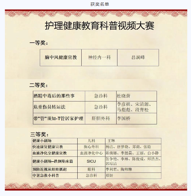 此次健康教育科普视频大赛,激发了今日看料全体护理人员的科普热情,推动和促进了今日看料健康宣教的开展。