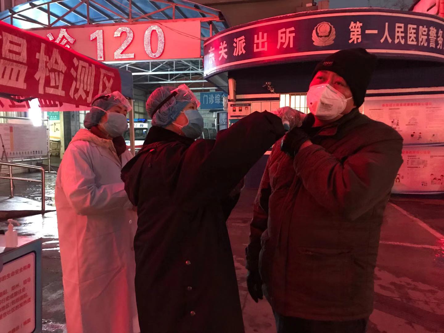 的每一个人进行测量体温,仔细询问流行病学史、接触史,进行登记、初步筛查、分诊。虽然漫天大雪,但是他们不畏严寒,恪尽职守,没有任何怨言,工作有条不紊,确保不漏掉一个人,用实际行动为保障人民群众的生命安全和身体健康筑起了第一道坚实防线。