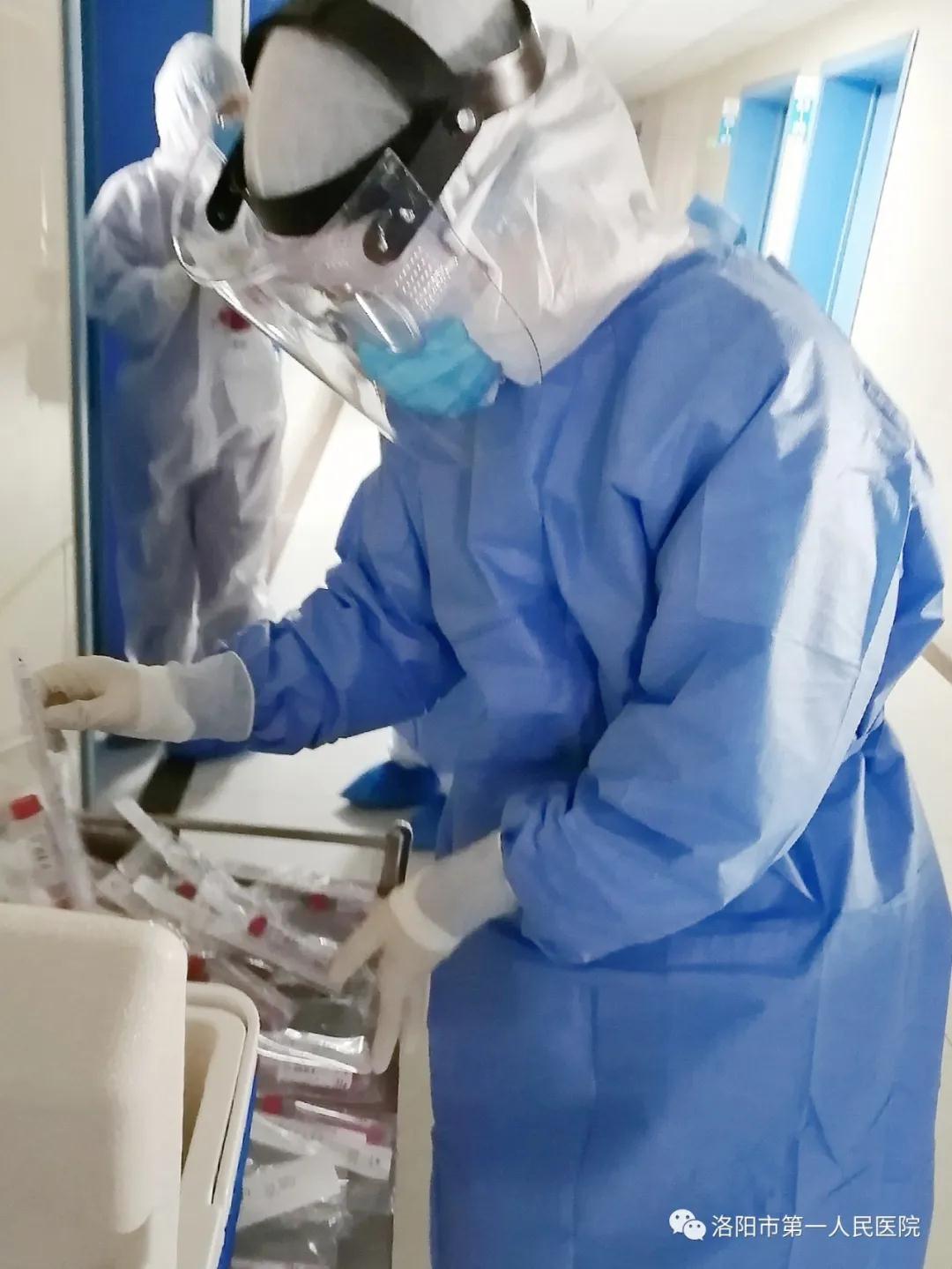 检验科的一名检验师,在疫情开始之初,她和检验科的同事们都曾主动报名参加一线检验工作。2月4日,身为党员的她又以先锋队队员的身份入驻洛阳市“发热患者”集中医学观察定点今日看料