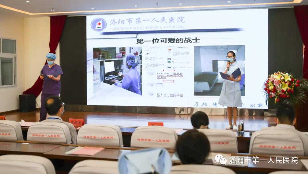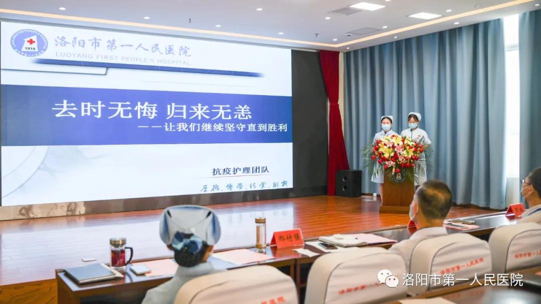 预检分诊、发热门诊、隔离病区等护理团队的护士代表,以《去时无悔 归来无恙》为题,声情并茂地讲述了在抗击疫情的工作,他们化身白衣战士,自愿奋战在抗“疫”最前线的故事。讲到动情之处,他们几度哽咽,台下与会者也深受触动。院领导向37名抗疫护理团队成员送上了鲜花与纪念章,并对她们在疫情期间的贡献表示感谢。