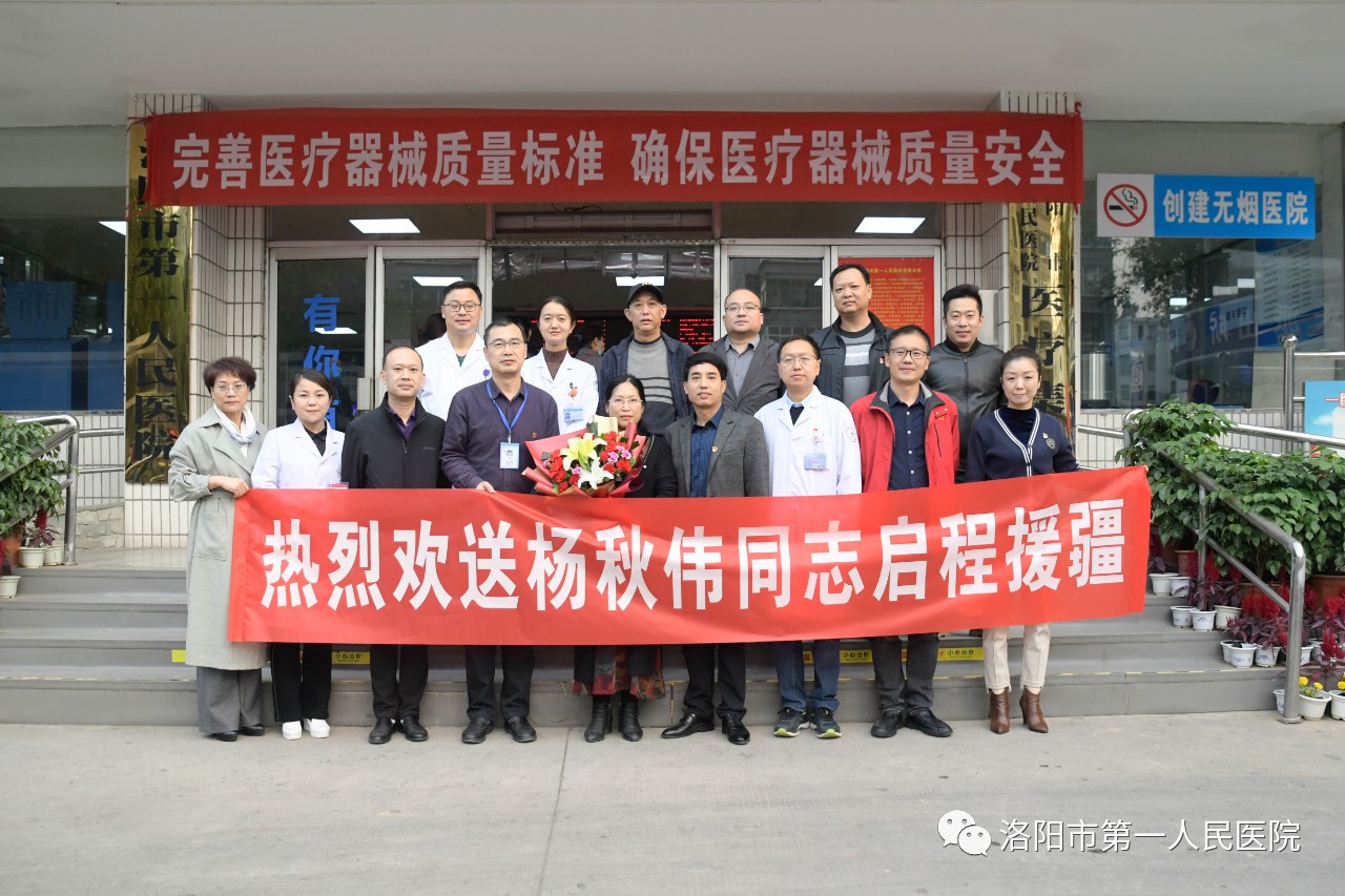 的形象和卫生战线的形象,更代表了古都洛阳的形象。希望杨秋伟同志要牢记使命,履职尽责,注重团结,保证安全。院党委将高度重视援疆工作,对援疆的同志,政治上要关心,生活上要照顾,工作上要支持,认真落实好援疆干部的工作待遇,使其安心工作。最后他代表院党委对祝愿她身体健康,工作顺利。