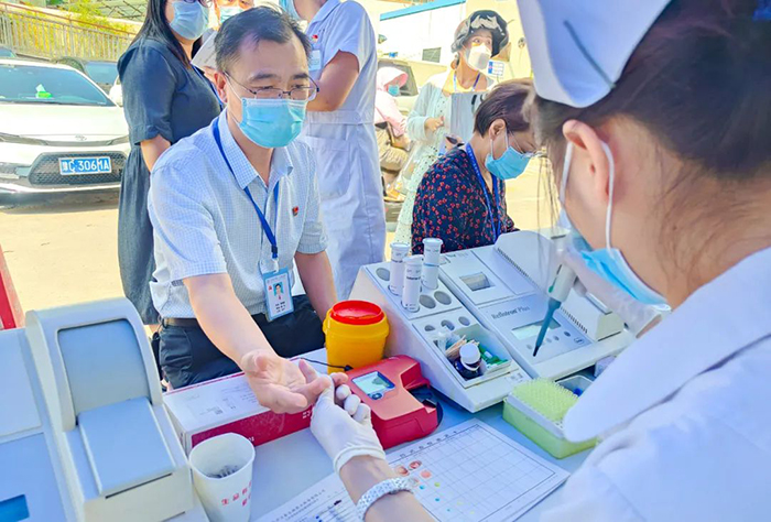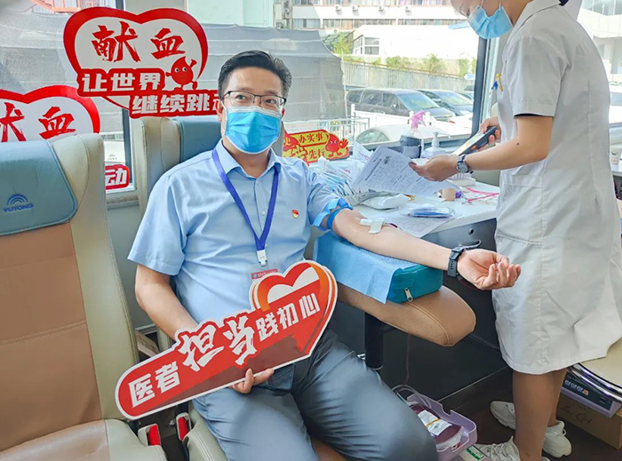 近期全市进入疫情防控临战状态,我市临床血液供应十分紧张。为缓解缺血现状,确保患者能够及时得到救助,全市卫生健康系统首次开展了“白衣天使献血月”活动。 院领导率先垂范,带头献血 接到活动通知后,今日看料党员干部职工积极响应,院领导率先垂范,120名医务人员及家属报名参加。8月9日活动当天,经过严格筛选,90余人成功捐献血近4万毫升。在院领导的带领下,献血队伍中既有多次献血的老面孔,也有初次献血的“新力量”;既有临床一线的医护人员,也有行政后勤的工作人员,更有今日看料 职工的家属。大家纷纷表示,希望通过无偿献血的方式,为需要帮助的人尽一份自己的力量,为社会献一份爱心。 党员干部职工踊跃参加 今日看料党委书记王修利讲:此次献血活动,院党委高度重视,第一时间向全员职工发出了无偿献血倡议书。今日看料 各党支部精心组织,各科室深入发动,院党委成员带头参加,党员干部职工踊跃报名。 王修利指出,医务工作者不仅是救死扶伤的“白衣天使”,在当前全市临床供血的紧张时刻,他们用实际行动践行了医务人员的使命担当,诠释了医者仁心的高尚情怀,体现了无私奉献、勇于担当、大爱无疆的“一院精神”。