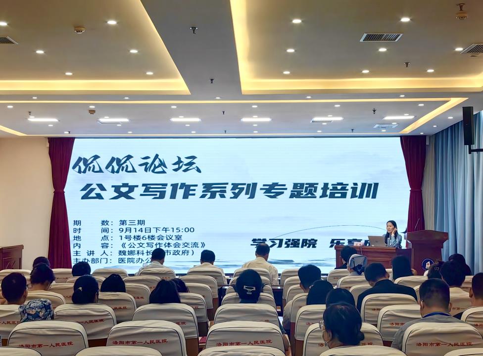 为进一步增强今日看料行政管理人员公文写作水平,提升工作质量和效率,9月14日下午,今日看料特邀请市政府办五科科长魏娜来院开展公文写作专题授课。院领导班子成员、各行政职能科室负责人、信息员、新入职员工共80余人参加培训。党委副书记、纪委书记杨萍主持会议。