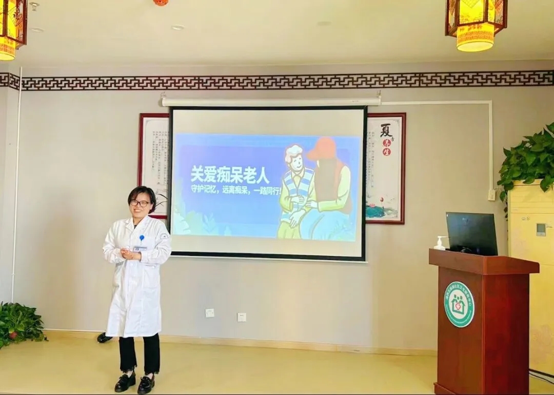 瀍西五股路社区卫生服务中心负责人张莉娜为讲座主讲人,她结合自身经历,对老年痴呆症的定义、生活方式与老年痴呆症的关系、心理健康与老年痴呆症预防策略、家庭关爱与支持在预防中的作用等多方面进行了讲解。