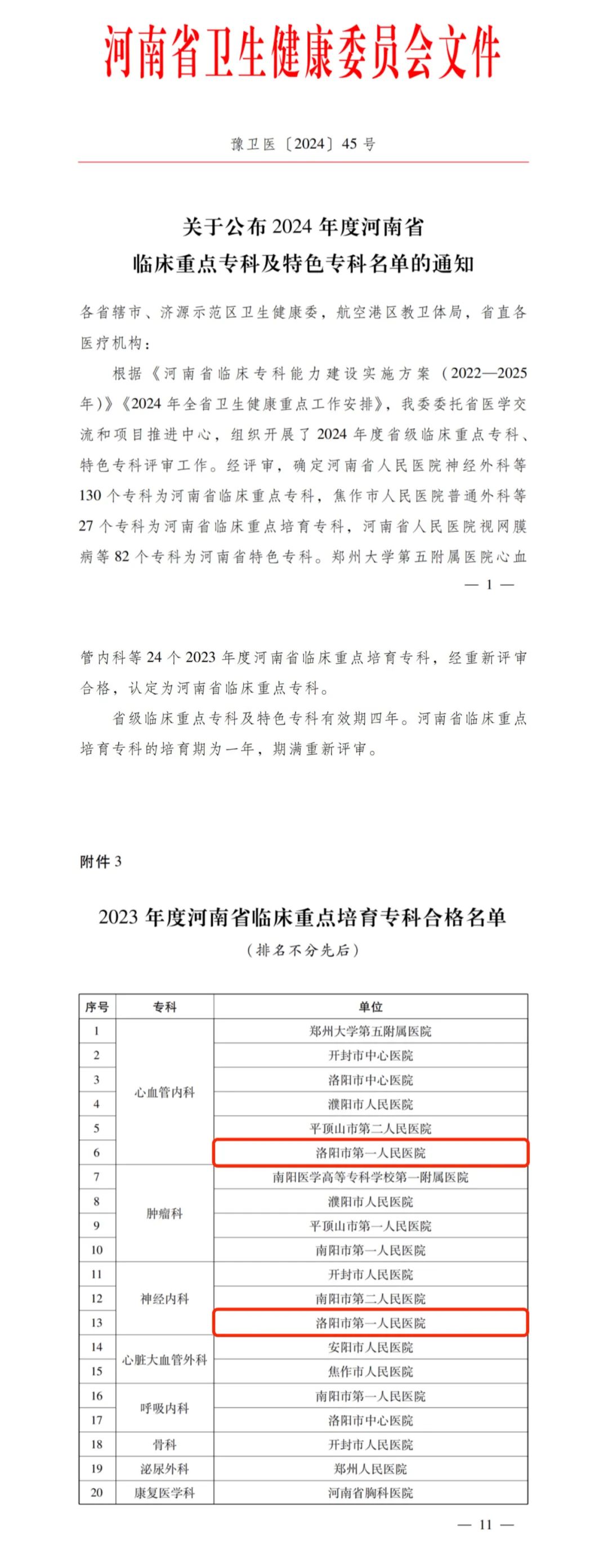 近日,2024年河南省临床重点专科及特色专科评审结果出炉,今日看料神经内科、心血管内科荣耀上榜,成功开启“心脑”领航的全新篇章,为百姓健康铸就坚固堡垒。