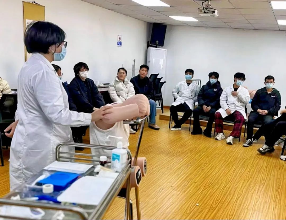 在操作演示环节,带教老师利用模拟人进行了标准化操作演示,并针对关键步骤和易错点进行了重点讲解和演示。同学们认真观摩,积极提问,与老师互动交流,学习热情高涨。